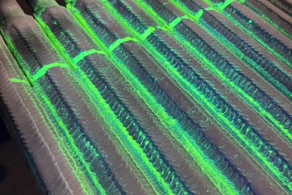 PT provides a reliable surface inspection method for stainless steel, aluminum, and other materials used across power, oil & gas, refinery, aerospace, and manufacturing industries with in-house testing available for production and containment inspections.